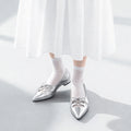 關於精緻材料由薄紗、蕾絲、針織等極其精緻材料製成的鞋子極易受到摩擦和撞擊,表面可能會撕裂,因此請小心。